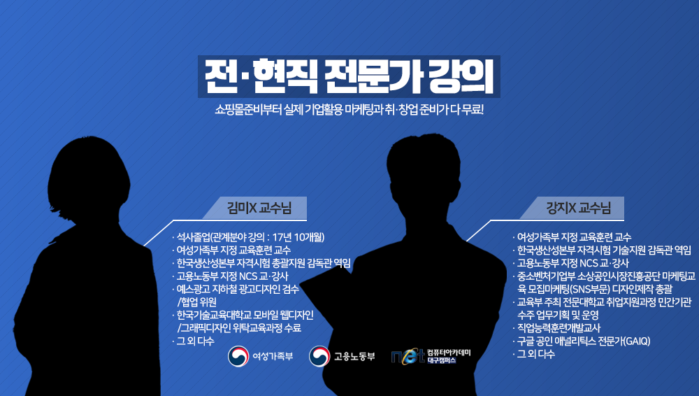 전액지원과정인 여성가족부 주최 쇼핑몰운영&스마트멀티사무원과정 진행 교수님을 소개합니다