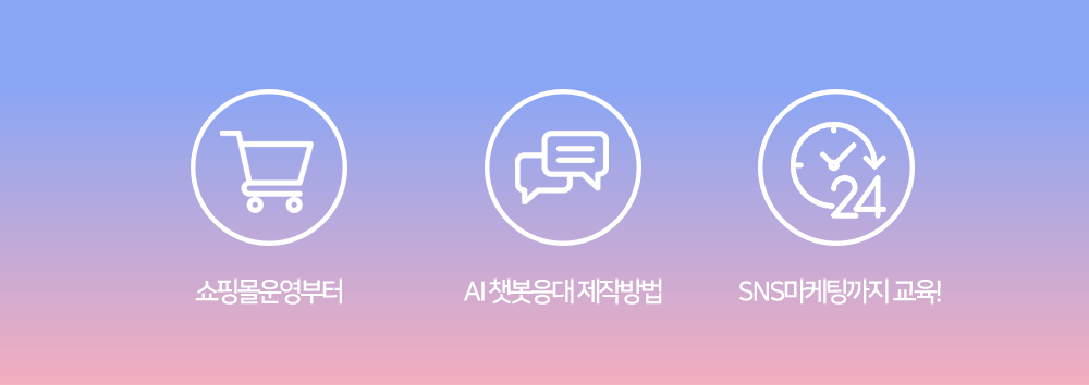 고객들이 상품을 구매할 수 있도록 유도하는 마케팅과 상품시각화 등의 방법을 학습하게되어 과정을 끝마친 후에는 전문 쇼핑몰운영 전문가로써 취·창업이 가능한 인재로 성장할 수 있게됩니다.