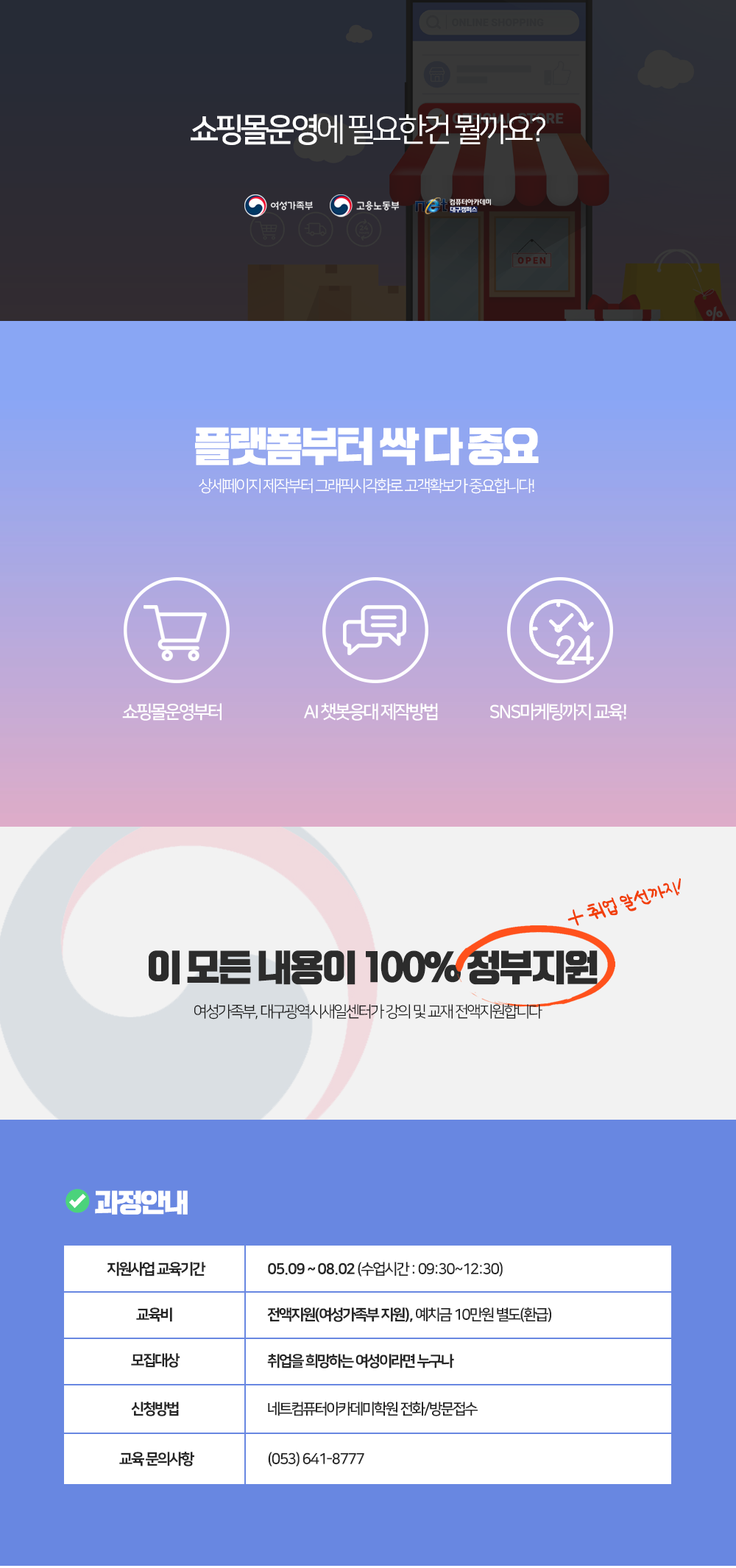 쇼핑몰운영에 필요한 건 뭘까요? 👉🏻 이 모든 내용이 100% 정부지원! + 취업알선까지