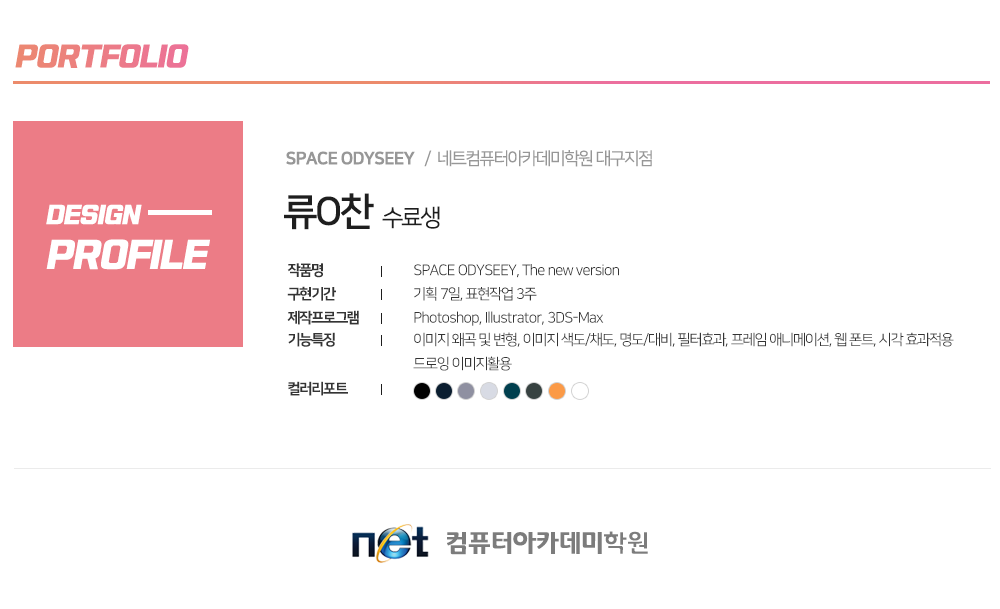 교육생 포트폴리오 [그래픽아트] 류O찬 수료생 포트폴리오 작성자 : 교무행정팀 작성일 : 2022. 3. 28. 12:05 공유하기 게시글 관리 네트컴퓨터아카데미학원 대구점 목록 [초격차] 예약쿠폰 최대 10% 단독제공! 🎯테마강의 마감주의 👆🏻 바로가기 교육부터 1:1 멘토링+인턴쉽 기회까지😎 지금바로 신청해봐! 티스토리툴바