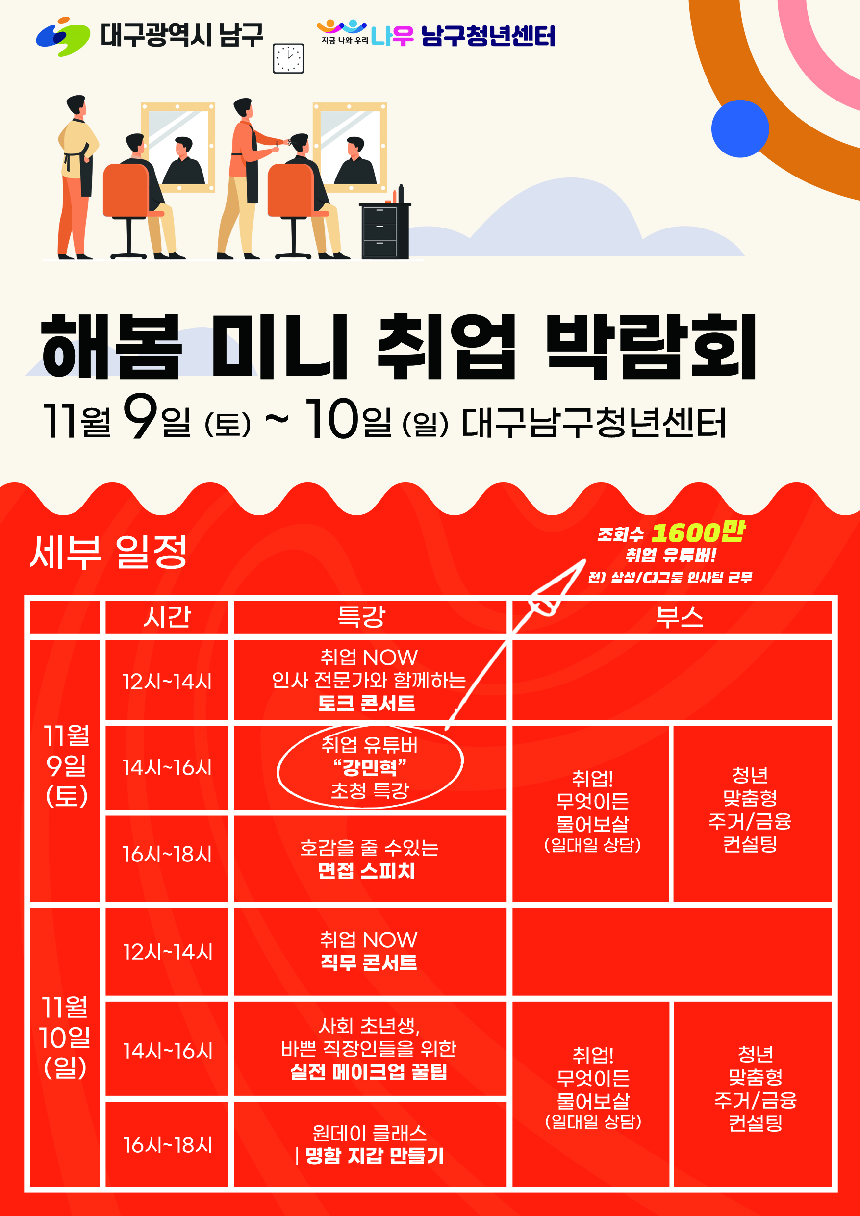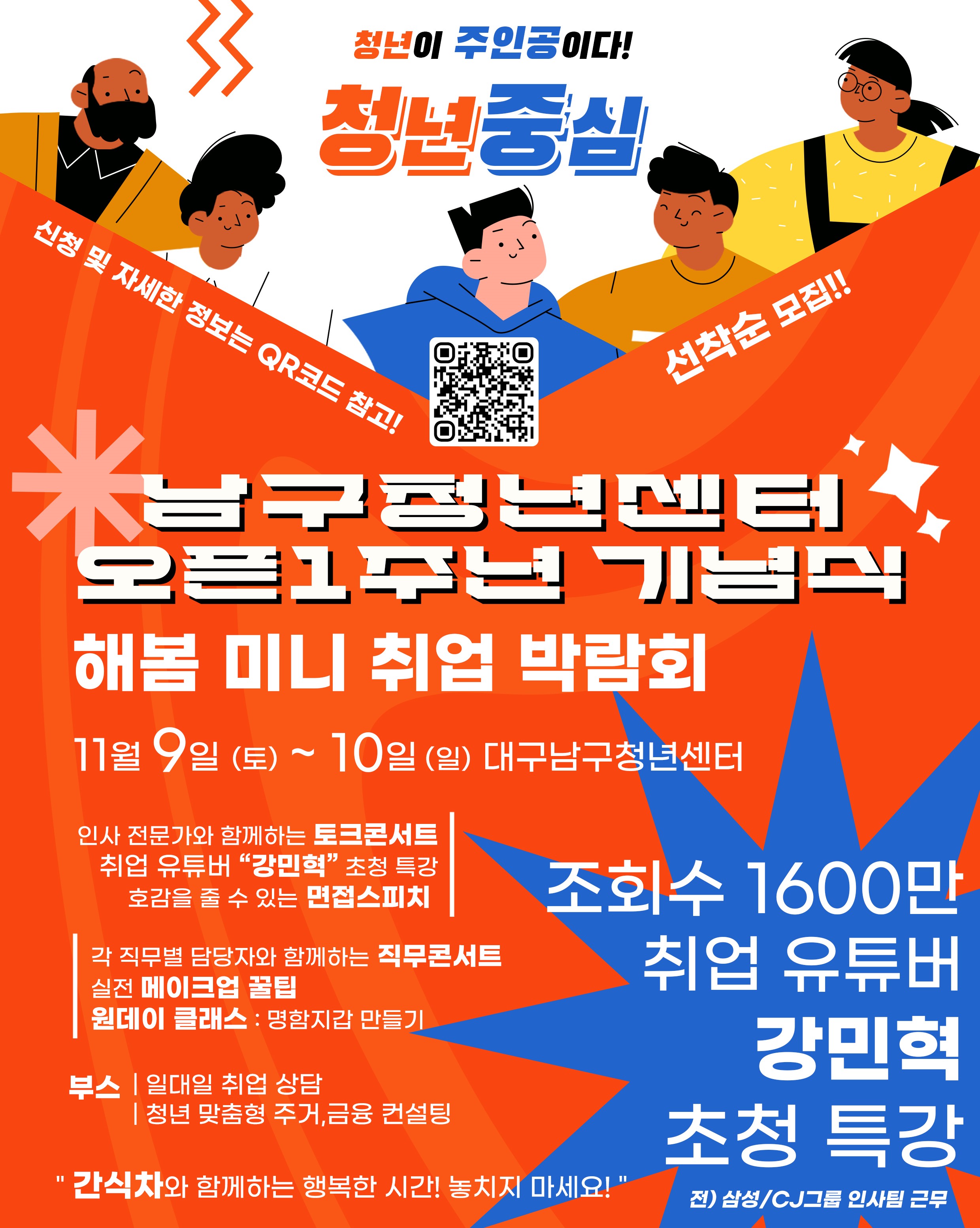 - 주요 혜택 안내: 11/9(토) 인사콘서트 및 취업 유튜버(강민혁) 특강 연속참여 시
