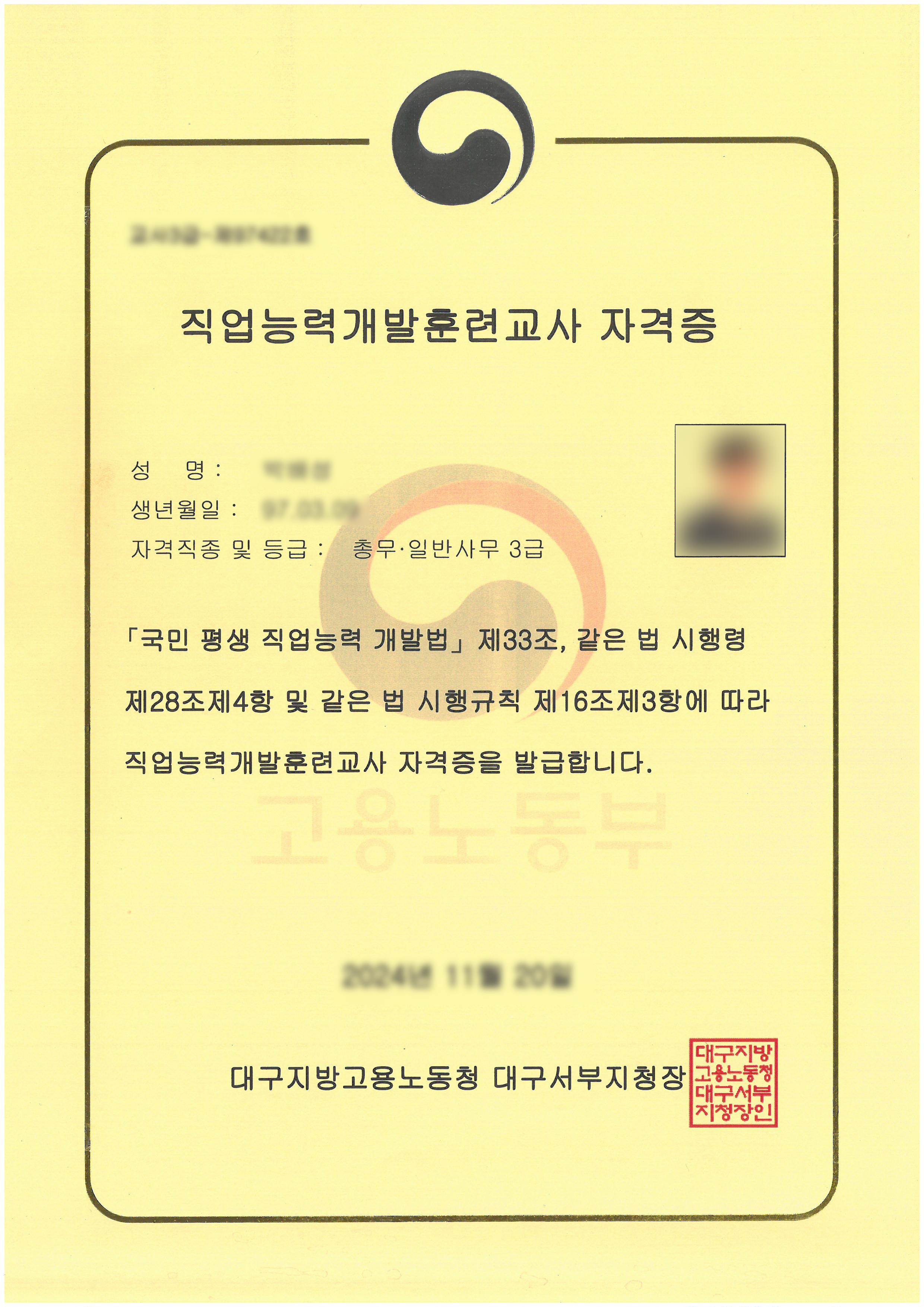 *고용노동부 직업능력개발훈련교사 자격부여 추천