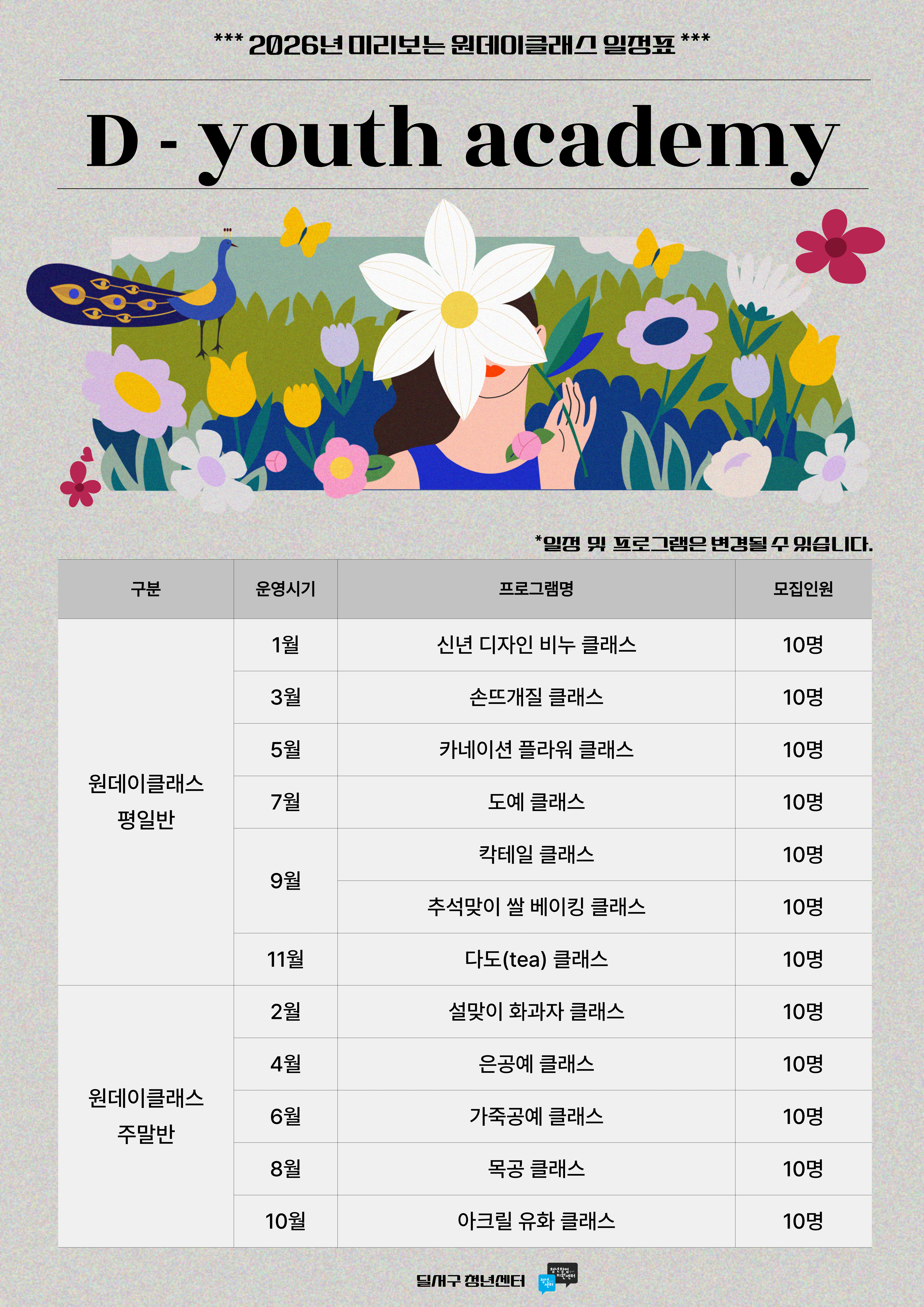 2. 연 3회 이상 원데이 클래스 수강은 불가하며, 수강권 소진시 차년도 1월 신규 부여