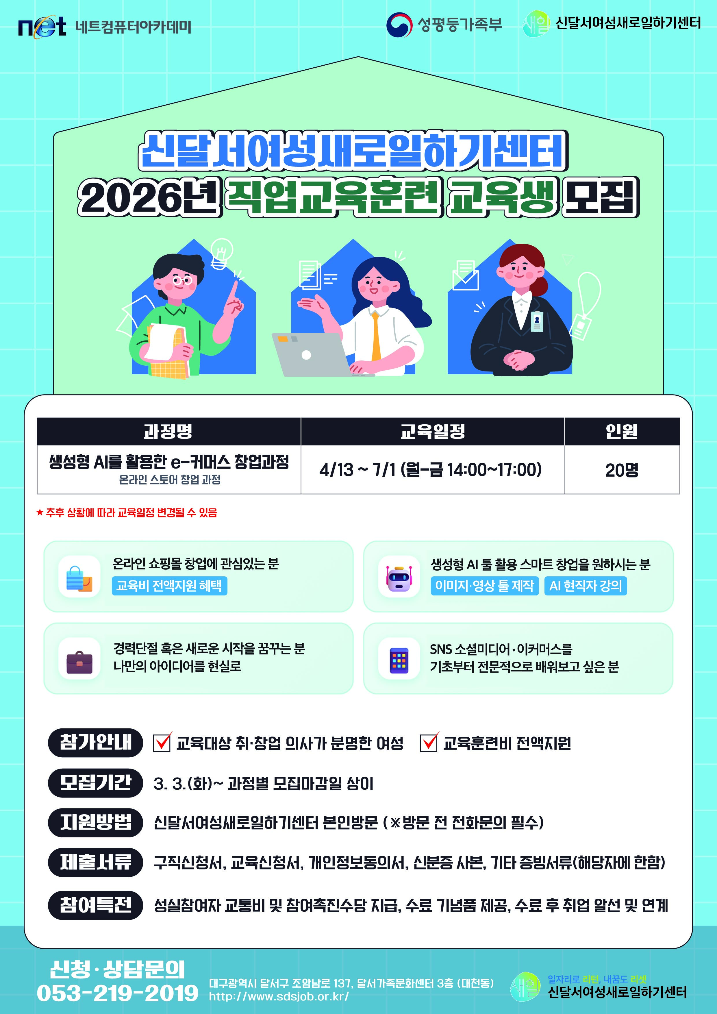 🎲 지원방법 : 신달서여성새로일하기센터 본인방문(※ 방문 전 전화문의 필수)