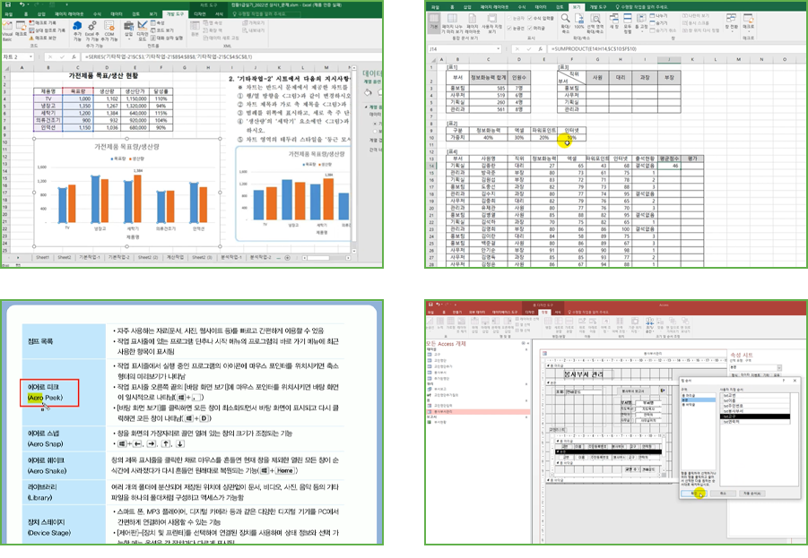 📗 어려운 계산을 간단하게 수식과 함수 사용하기📗 데이터베이스(엑세스, 쿼리 전반) 📗 사무실무에서 필요한 그래픽 활용하기(표, 도형, 그림) |