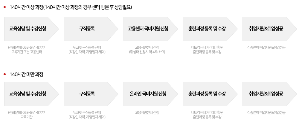 - 실업, 재직, 자영업 여부와 관계없이 국민내일배움카드 한 장으로 5년간 사용 가능