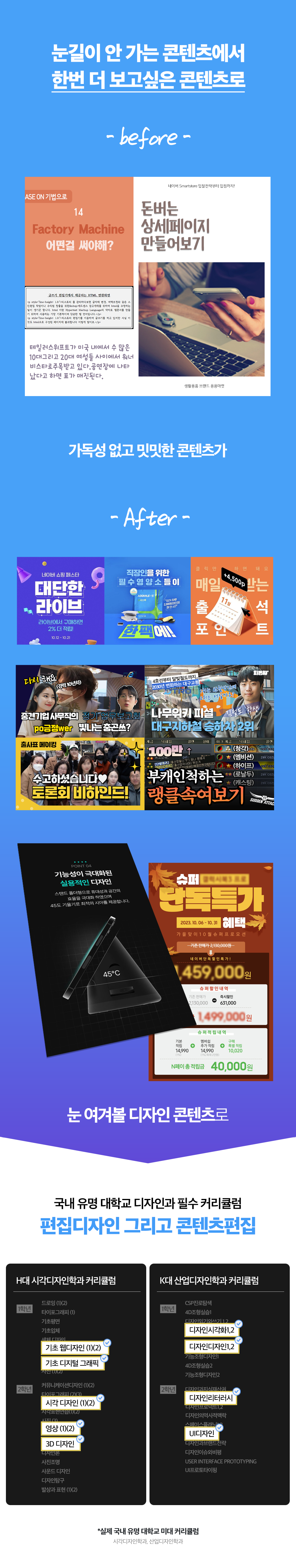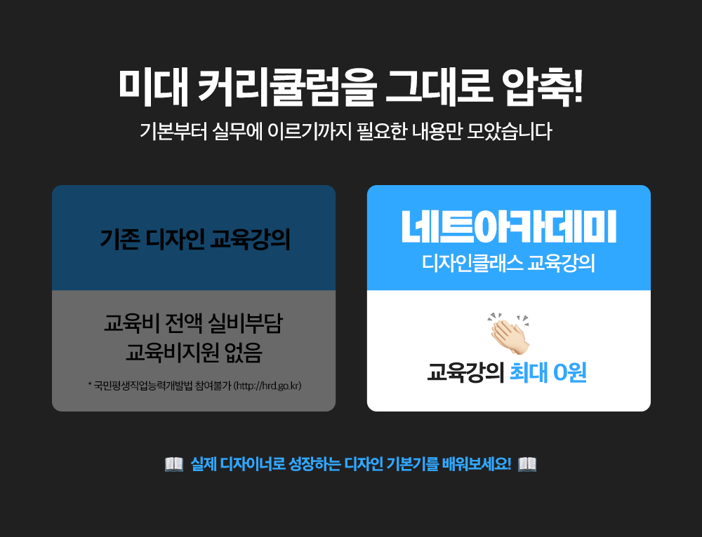 | [편집디자인 기초실무] 포토샵&일러스트 디자인 초격차과정 (토/09:00~14:00) | 4월 27일~ 6월 22일 |