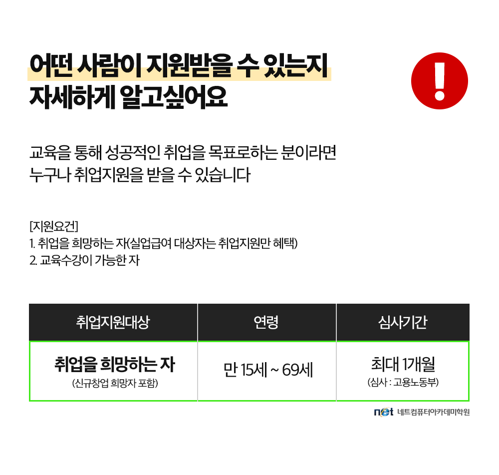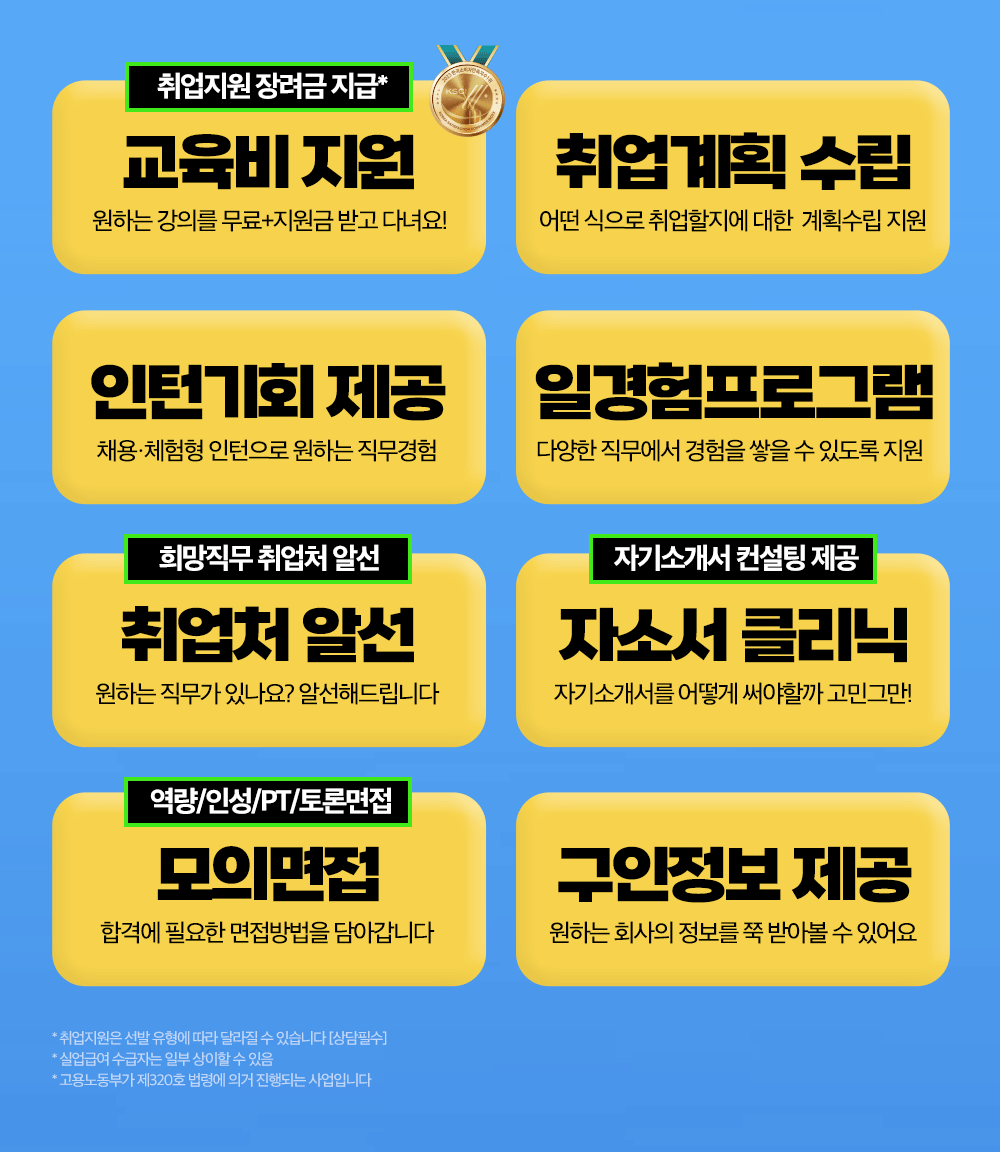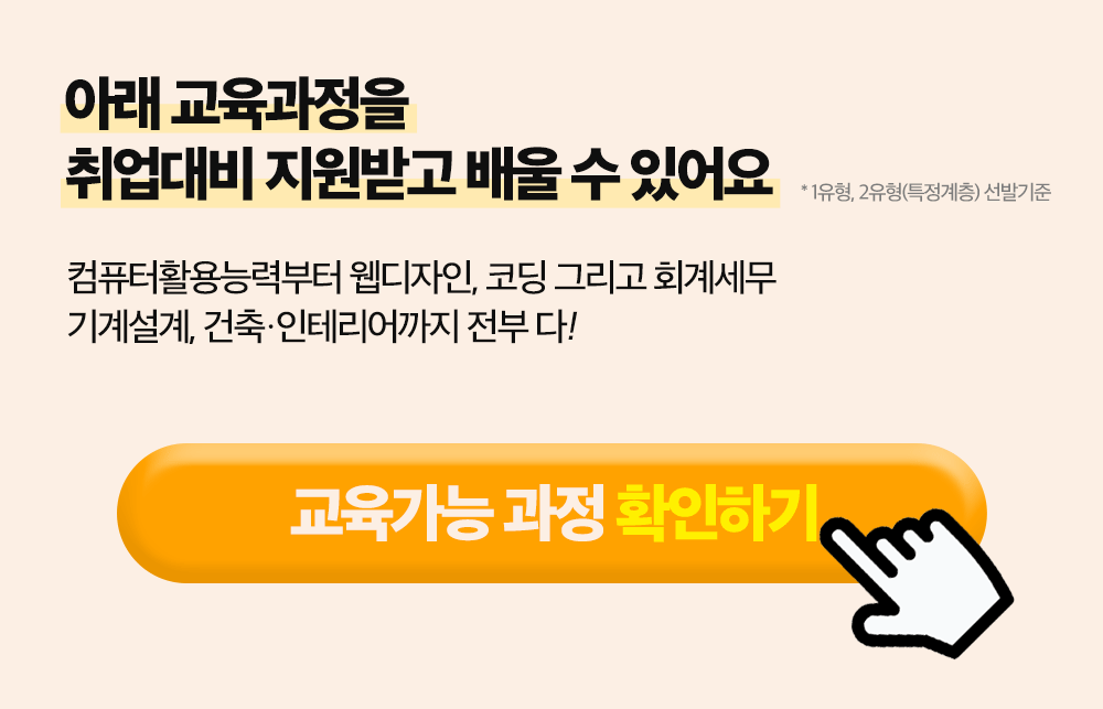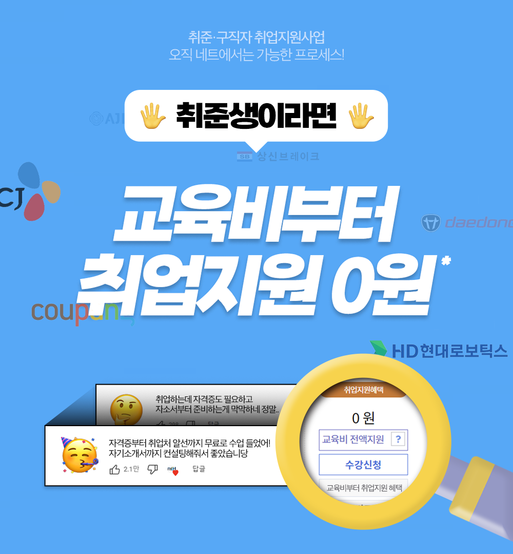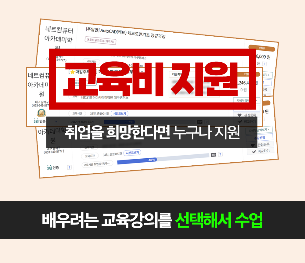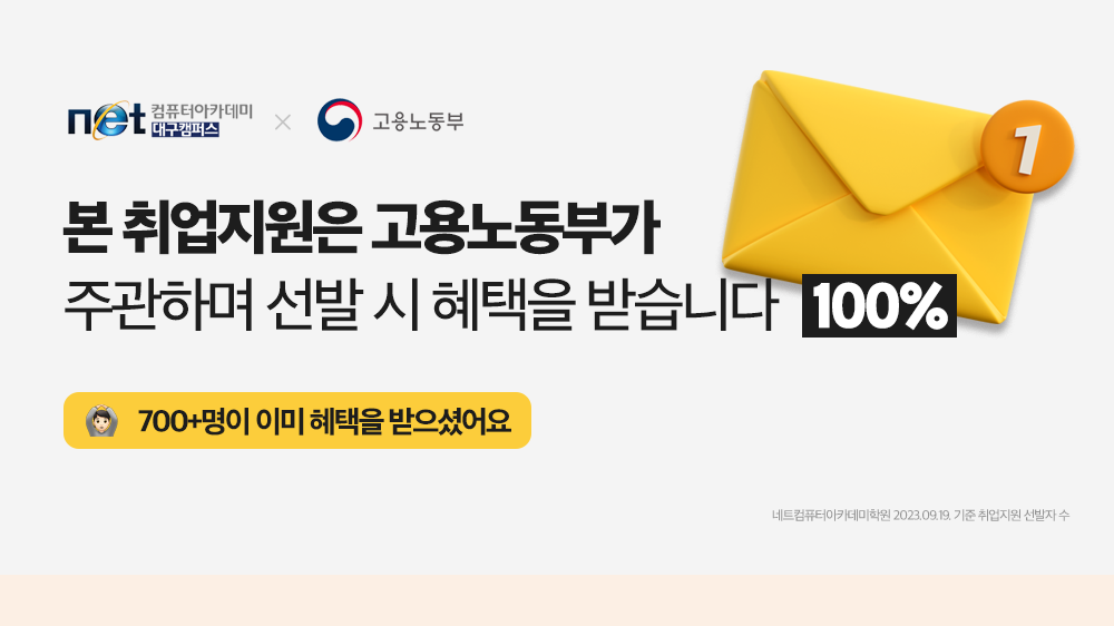 교육기관 안내 교육기관 소개 교육기관장 소개 캠퍼스안내 캠퍼스 주차안내 개강일정 안내 정규 교육과정 국비 교육과정 ⏱️마감주의⏱️ 취준생이라면 배우고 취업연계까지 단번에! 교육비 지원부터 취업지원 신청접수바로 알아보시겠어요? ✅ 취업지원에 선발 시 교육비 지원부터 취업연계(취업계획, 인턴/일경험프로그램, 취업처 연계 등), 모의면접 등 성공적인 취업성공을 위한 모든 것들이 지원! 고용노동부가 주관하며 선발생 신분으로 취업성공 시 축하금까지 지급받을 수 있어요 공유하기 게시글 관리 네트컴퓨터아카데미학원 대구점 [초격차] 예약쿠폰 최대 10% 단독제공! 🎯테마강의 마감주의 👆🏻 바로가기 교육부터 1:1 멘토링+인턴쉽 기회까지😎 지금바로 신청해봐! 티스토리툴바