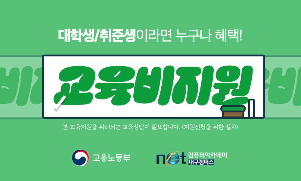교육훈련을 통해 돈으로 인한 부담은 줄이고 결과는 UP! 청년층을 위해 시행하는 교육지원제도는 자격대상자 여부 조회 후 우선신청이 가능한 부분이므로 상담은 필수!