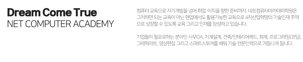 교육기관 안내 교육기관 소개 교육기관장 소개 캠퍼스안내 캠퍼스 주차안내 개강일정 안내 정규 교육과정 국비 교육과정 교육기관(아카데미) 소개 교육기관 소개 중장기 발전계획 교사채용 INTRODUCE 🖥️ 담당자 정보(담당부서) 담당부서 : 교무행정팀 대외협력파트(☎053-641-8666) 공유하기 게시글 관리 네트컴퓨터아카데미학원 대구점 [초격차] 예약쿠폰 최대 10% 단독제공! 🎯테마강의 마감주의 👆🏻 바로가기 교육부터 1:1 멘토링+인턴쉽 기회까지😎 지금바로 신청해봐! 티스토리툴바