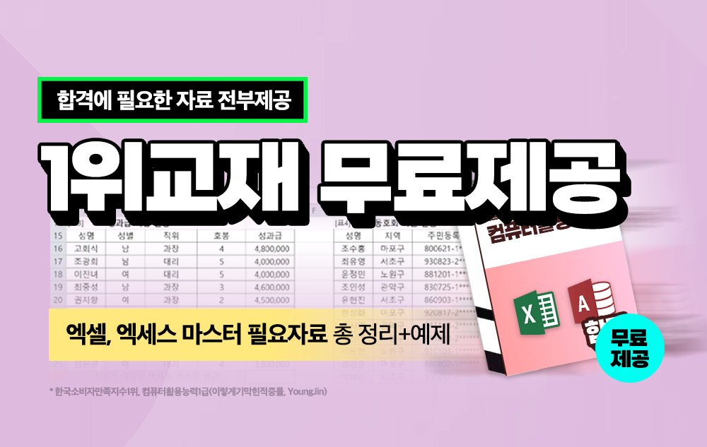 ✅ 교육수강 시 필요한 교보재(필기·실기·사무실무)는 교육생 전원 무료제공합니다.