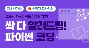 | 마감주의 대구유일 다양한 예제+기초실무로 파이썬 끝장내기 |