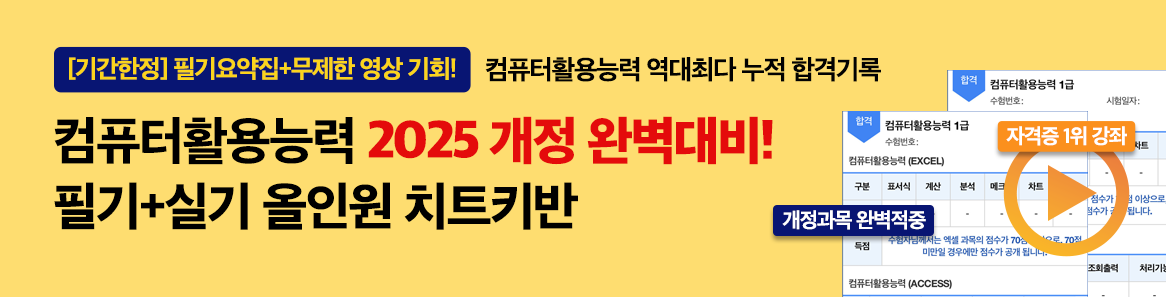 컴퓨터활용능력 1급(2급포함) 필기+실기 올인원 합격과정